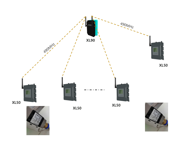 XL50通過無線,上傳瞬時(shí)流量、累積流量數(shù)據(jù)至XL90網(wǎng)關(guān)。