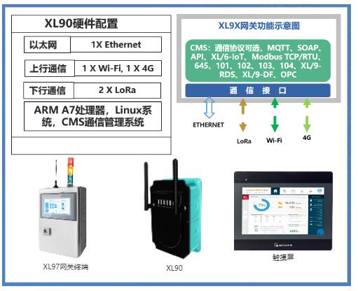配置1臺XL90物聯網關,作為系統通信核心,無線連接現場控制設備,通過以太網連接觸摸屏。