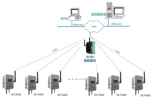 網絡層:XL13AD差壓傳感器通過LoRa無線傳輸數據至XL906物聯網關或XL97網關終端,網關可選Ethernet、Wi-Fi、4G等多種方式將差壓數據傳輸至監控平臺。