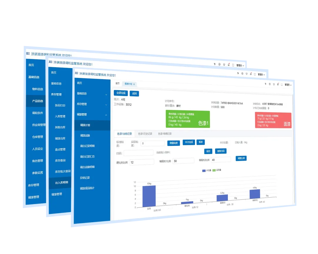平臺(tái)自動(dòng)記錄、生成用戶所需的各類報(bào)表,如調(diào)漆成品統(tǒng)計(jì)、庫存余料盤點(diǎn)等報(bào)表;